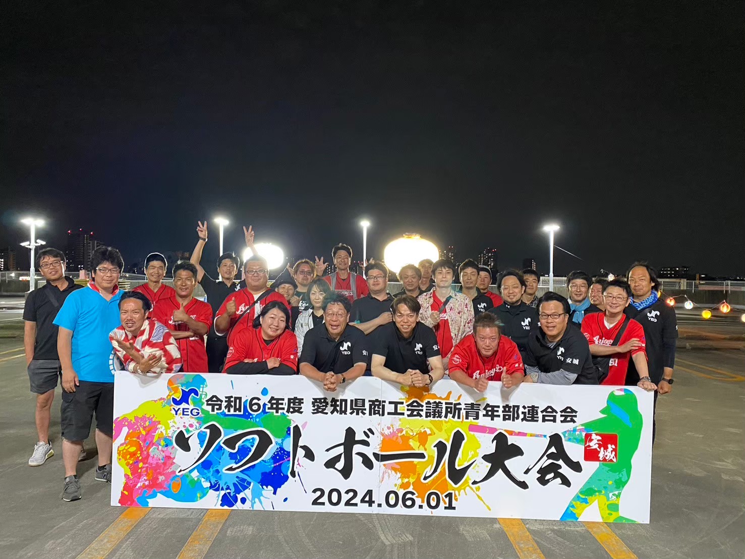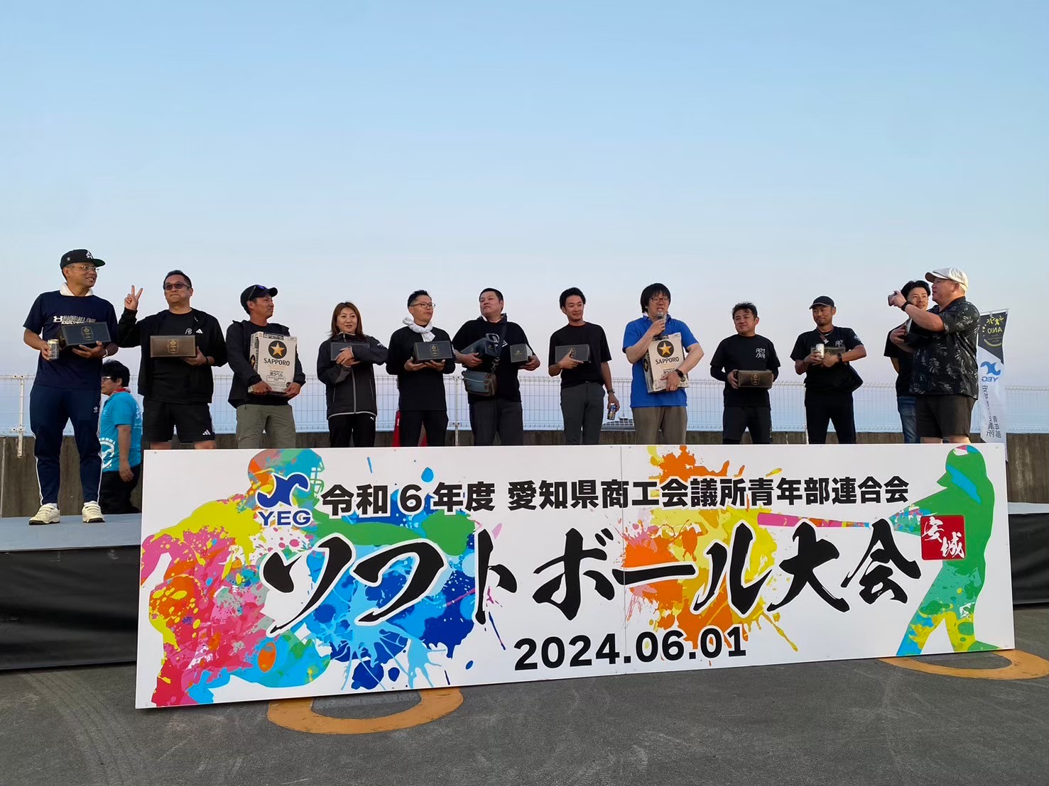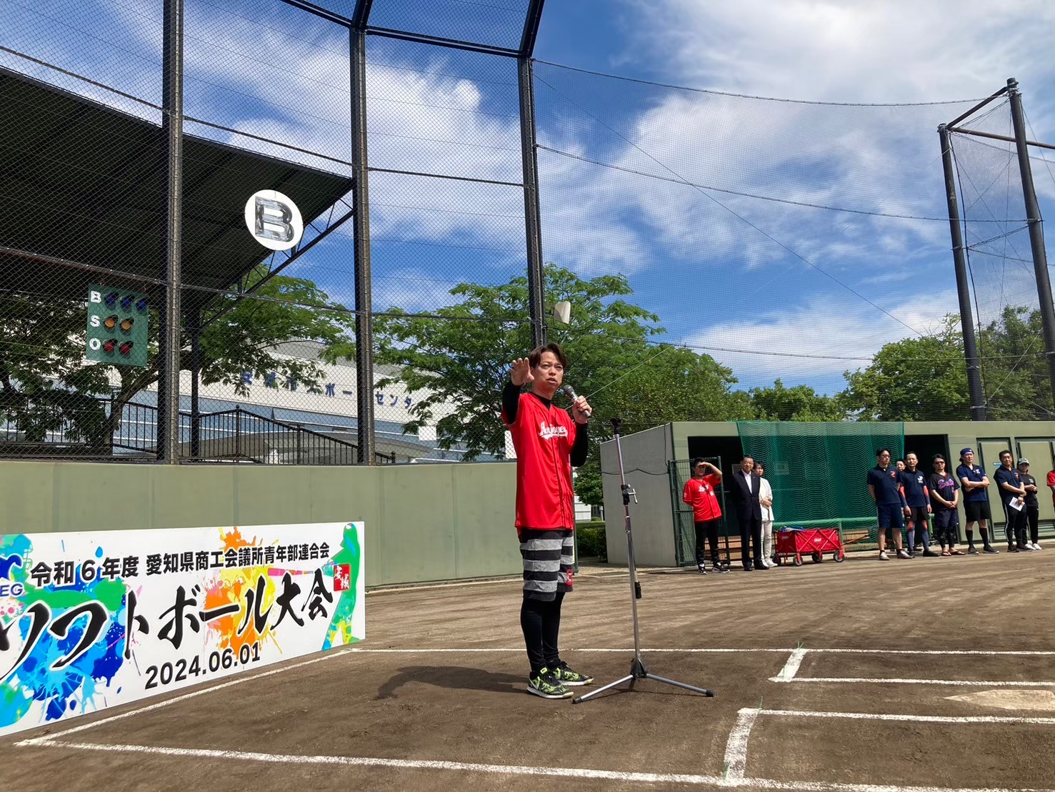 令和6年6月1日に安城市総合運動公園野球場にて、6月例会「愛知県商工会議所青年部連合会ソフトボール大会」が開催されました。安城商工会議所青年部は、大会進行運営および懇親会の企画運営に携わりました。当日は天候に恵まれ、無事に終了しました。毎年、愛知県内各地で開催されるこの大会ですが、今年は安城市が開催地となり、県内各地から商工会議所青年部の皆様をお迎えしました。残念ながら、安城商工会議所青年部は優勝を逃しましたが、試合は珍プレーや好プレーが続出し、白熱した展開となりました。ソフトボールの運営や試合を通じて、安城商工会議所青年部の団結力が一層強まり、他の地域から参加された青年部のメンバーとも親睦を深めることができました。